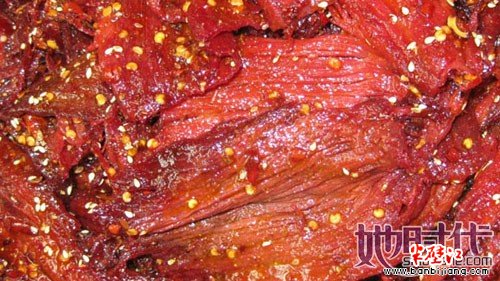 6.火鞭子牛肉 火鞭子牛肉起源于清代乾隆年代,清末民初已成为四川名特产。与张飞牛肉和太和牛肉一起称为“川中牛肉三杰”.以质优味美、片薄如纸、酥香绵长而闻名遐尔。火鞭子是旧时四川自贡地区的照明火把,这里用“灯”的明亮,来表示牛肉的薄而透亮。现在很多商品写作“火边子”,属误字。