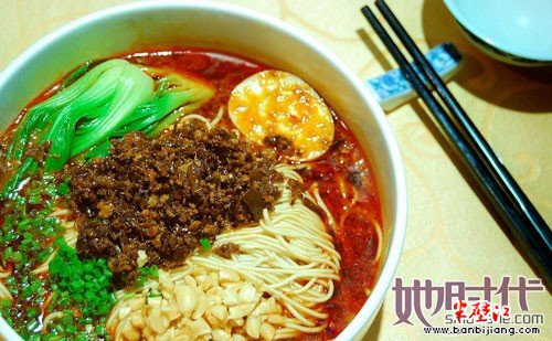 2、担担面 担担面是四川民间极为普遍且颇具特殊风味的一种着名小吃。因常由小贩挑担叫卖,由此得名。此面用面粉擀制成面条,煮熟,舀上炒制的猪肉末而成。成菜面条细薄,卤汁酥香,咸鲜微辣,香气扑鼻,十分入味。
