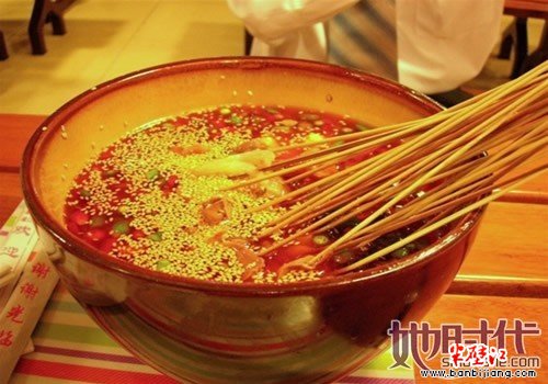 1.钵钵鸡 钵钵鸡从清代流传至今已有上百年的历史。是以陶器钵盛放配以麻辣为主的佐料,加上多种调料的去骨鸡片拌和而成。有皮脆肉嫩,麻辣鲜香,甜咸适中的特色。吃奶汤面时配以钵钵鸡,别具风格。