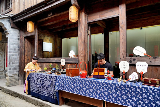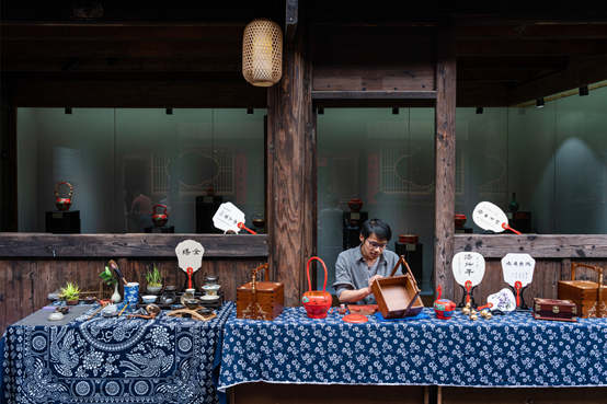 古镇烟火味 活色生香来 蔷薇爬越青砖老墙,静谧的前童缓缓苏醒,伴随着熟悉的人间烟火味。浓郁的豆浆中升腾起了热气,虾皮麦饼的香味迎面扑鼻。大人小孩们又走上了街头,保持距离中感受古镇本来之美。 在古镇的烟火中,明德书院坚守文创的执念,在这个五一长假邀朋唤友,为游客们呈现一出出“ 活 色 声 香 ”文化场景。