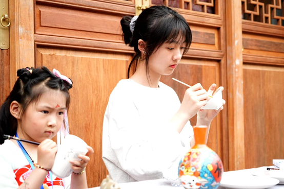 柃姐的团扇或工笔或写意,花鸟虫鱼跃然于扇,这就是所谓的妙笔生花吧。还可让游客自主创意,体验一回创作者的成就感。 萌娃的脑海,早已天马行空,未来可期。 生,高山流水觅知音 因生而声,古镇古琴,相得益彰。这边厢,曼妙古琴诉说书院的一方清雅; 那边厢,小美女的古筝张驰有度,引来游客们的喝彩不断。 香,各类小食糕点茶 斯文可饮,雅意可食。半磨斋的布景简洁明亮,闲坐品茶是一种享受。配上何小桃的长寿糕,就是一段轻松写意的慢时光。 |