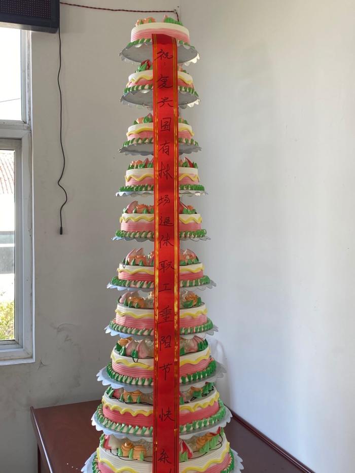 参观总场之后,大家一起分享了工会为大家准备的新颖别致的十二层三米高的大蛋糕。老同志们感受到领导们真切关怀和祝福。最后大家一起合影留恋。